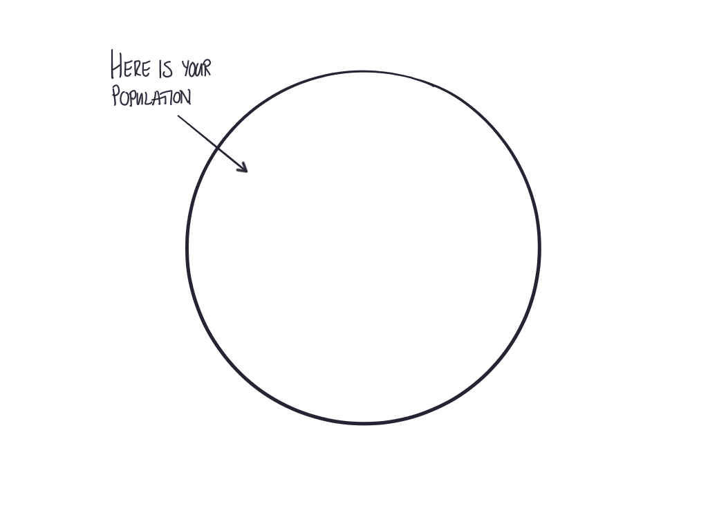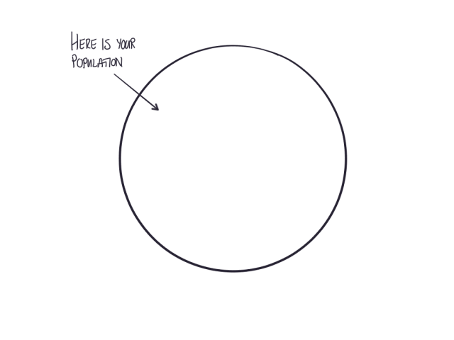 First, you have a population or set of data points. By drawing that first line you have immediately decided what is in, and what is out.